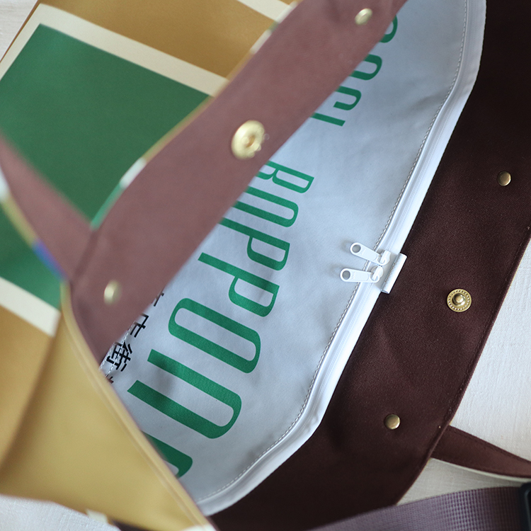 トートバッグをざっくり背負う。