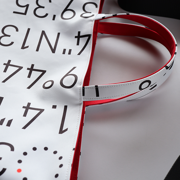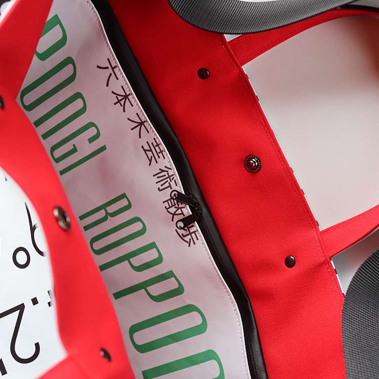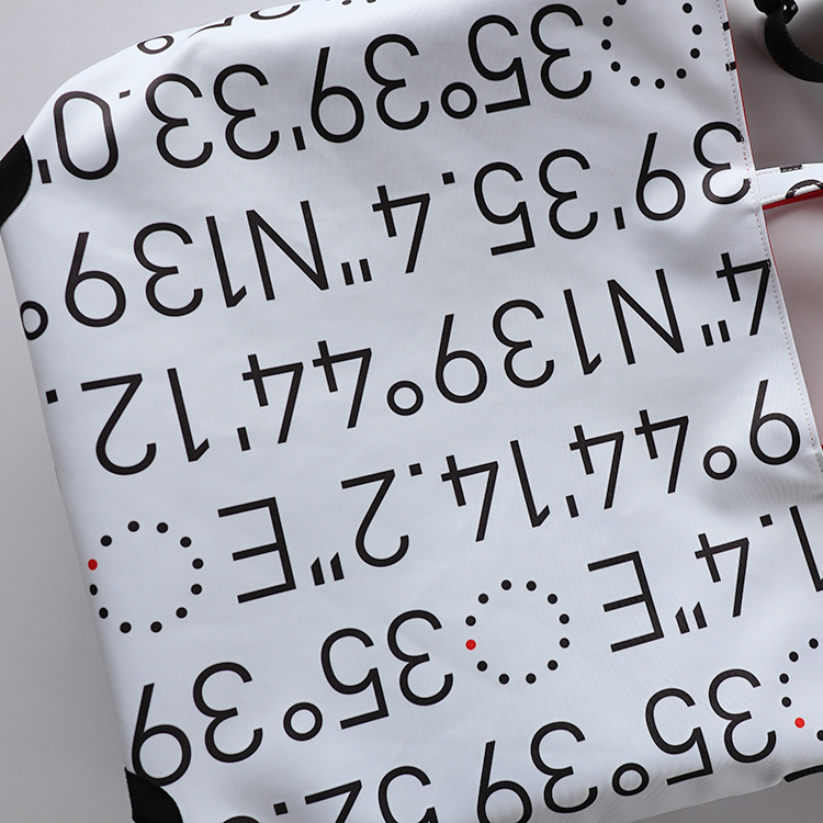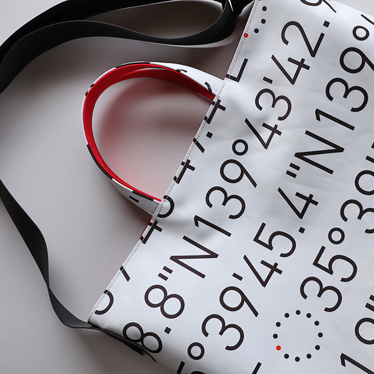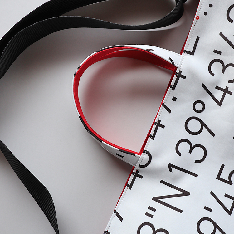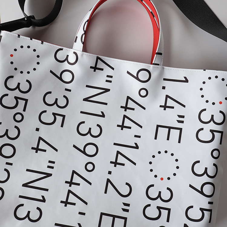 グラフィック・デザインが全面に映える、大きめサイズのショルダーベルト付きトートバッグ。