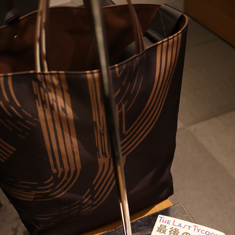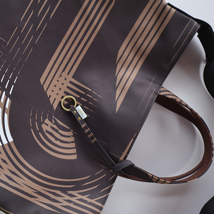 グラフィック・デザインが全面に映える、大きめサイズのショルダーベルト付きトートバッグ。