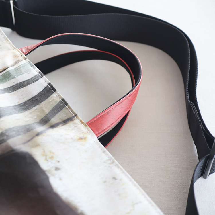 手で持ちやすいように短めのハンドル、肩に斜め掛けもできる長さが調整可能なショルダーベルト、