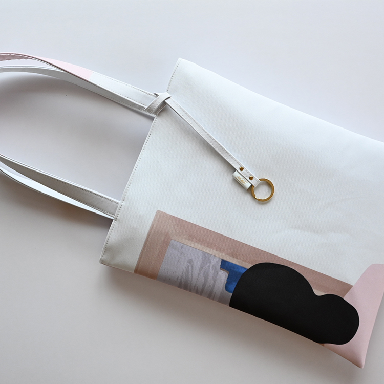 ラップトップPCも持ち運べる縦型のリバーシブル・トートバッグ。