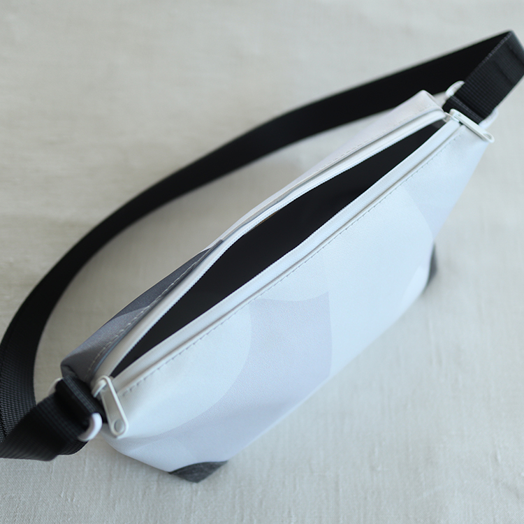 斜め掛けもできるように、ストラップは短すぎず、かといって長すぎて野暮ったくならないように。