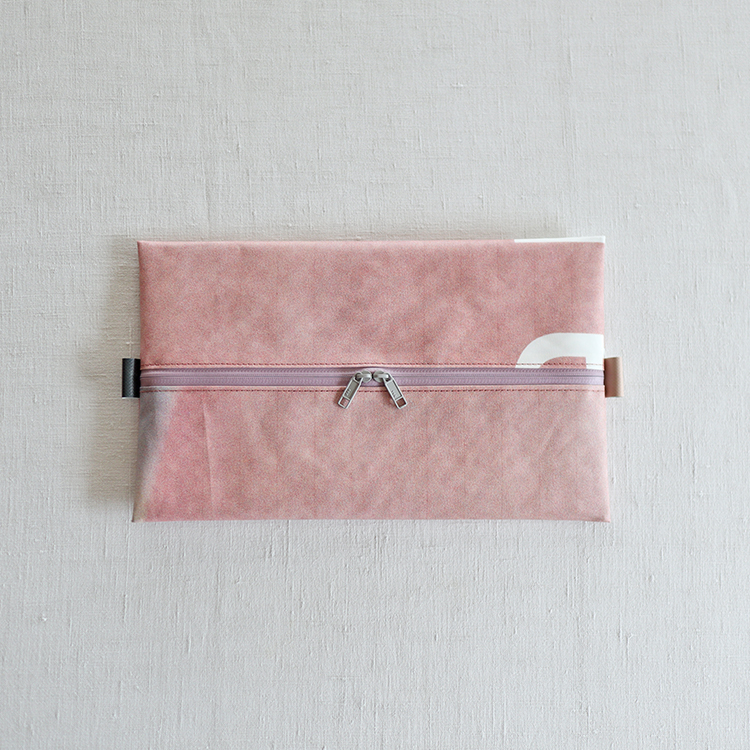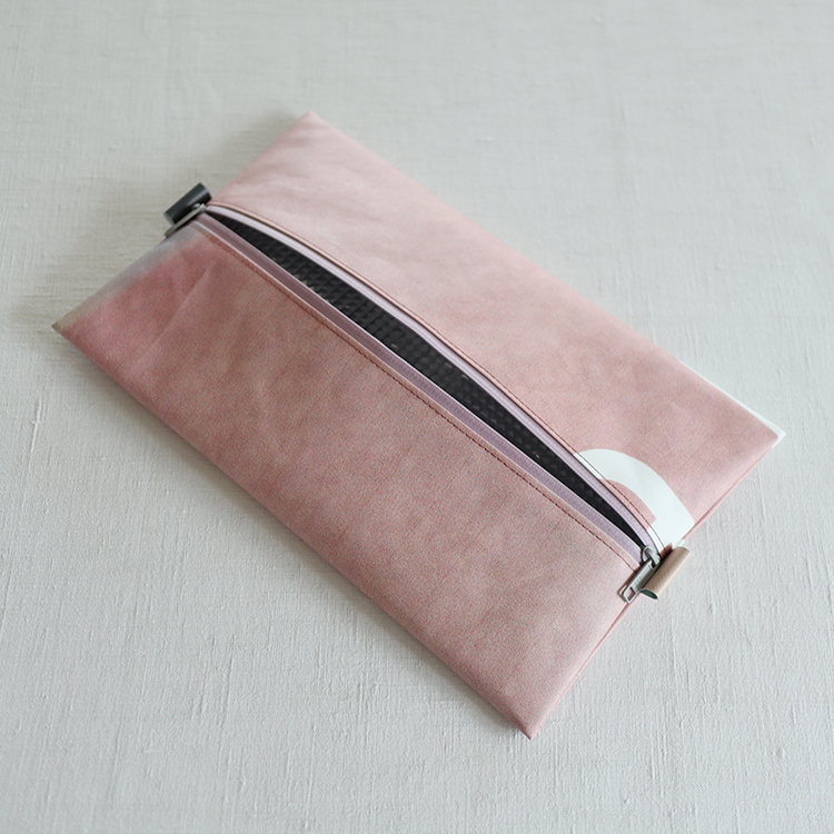 a slim pouch with a dual zipper running along the center, designed for both stability and versatility.