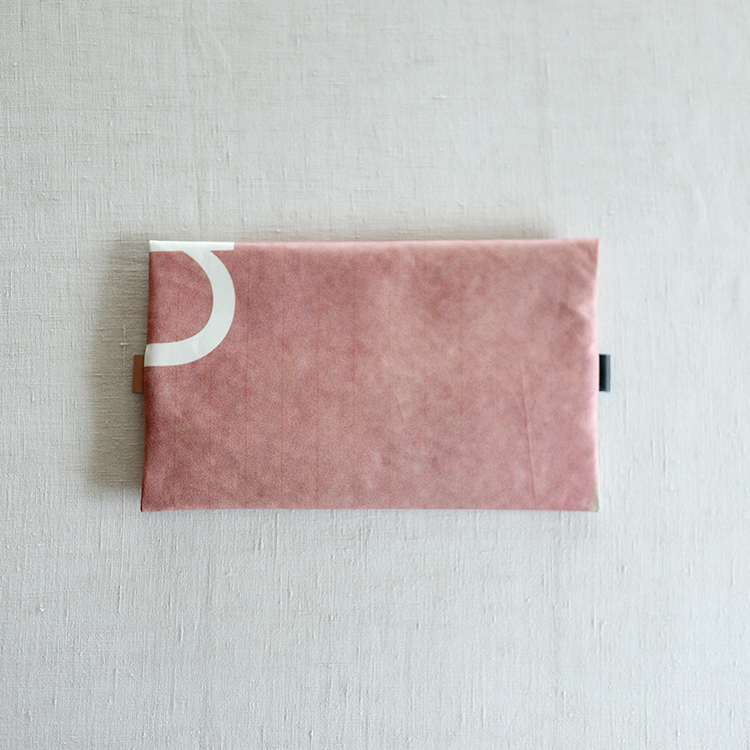 上記の要望を踏まえ、試行錯誤を重ねていると、ポーチの真ん中長手方向に、両開きでファスナーが走るイメージがふと降りてきました。